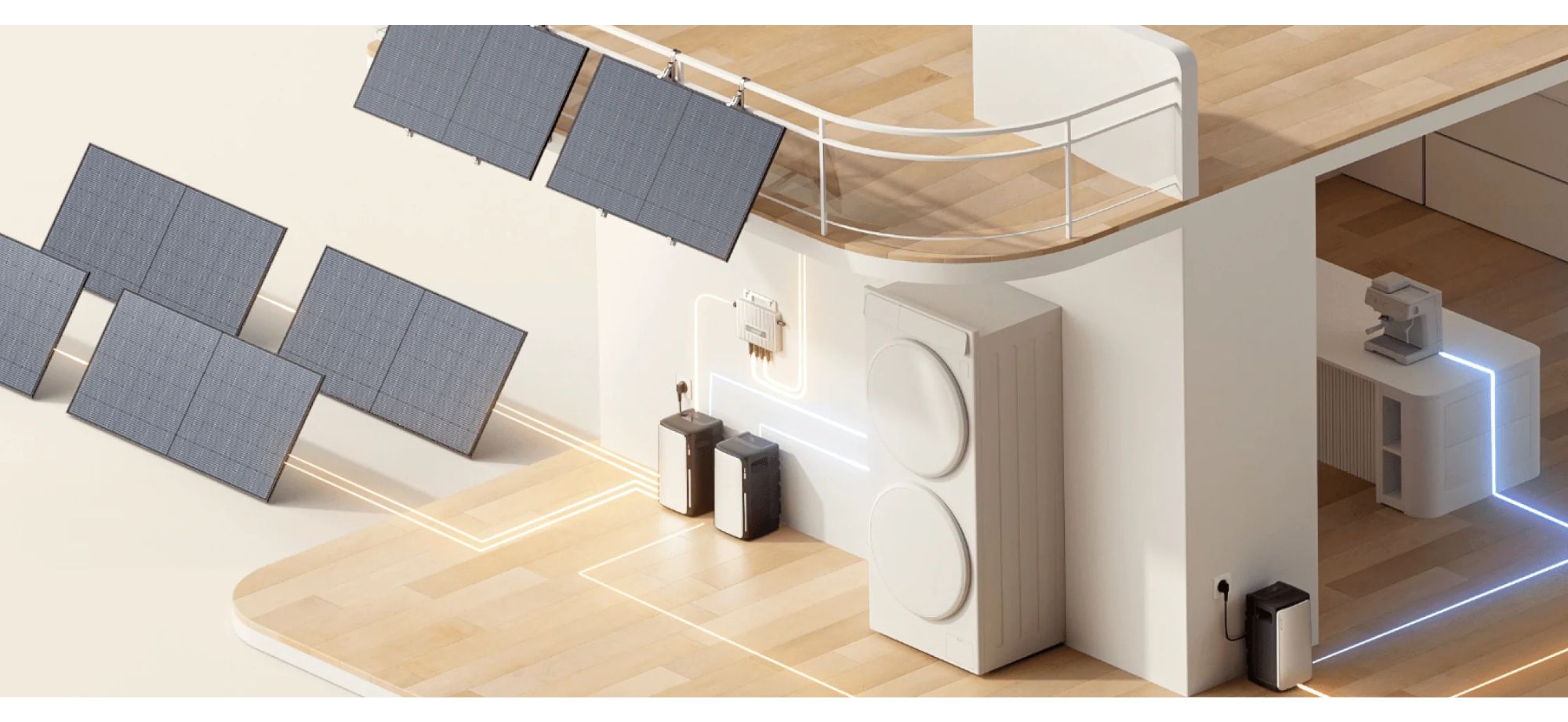 Cuando sale el sol, STREAM Ultra capta la energía solar y la usa de inmediato para alimentar tu casa. El exceso se guarda automáticamente para usarlo por la noche 🌙.